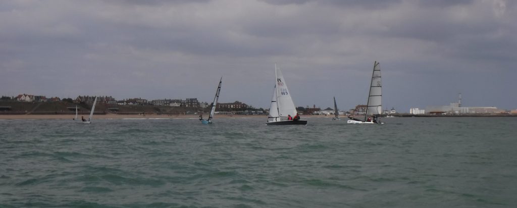 Another overcast day with a very light chilly northerly wind. The flags along the cliff were flying so things were looking good after last week’s sailing was scuppered by storm Amy. Nine teams lined the prom with crews looking forward to a final day on the sea before the annual migration for winter to other inland waters.