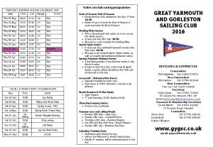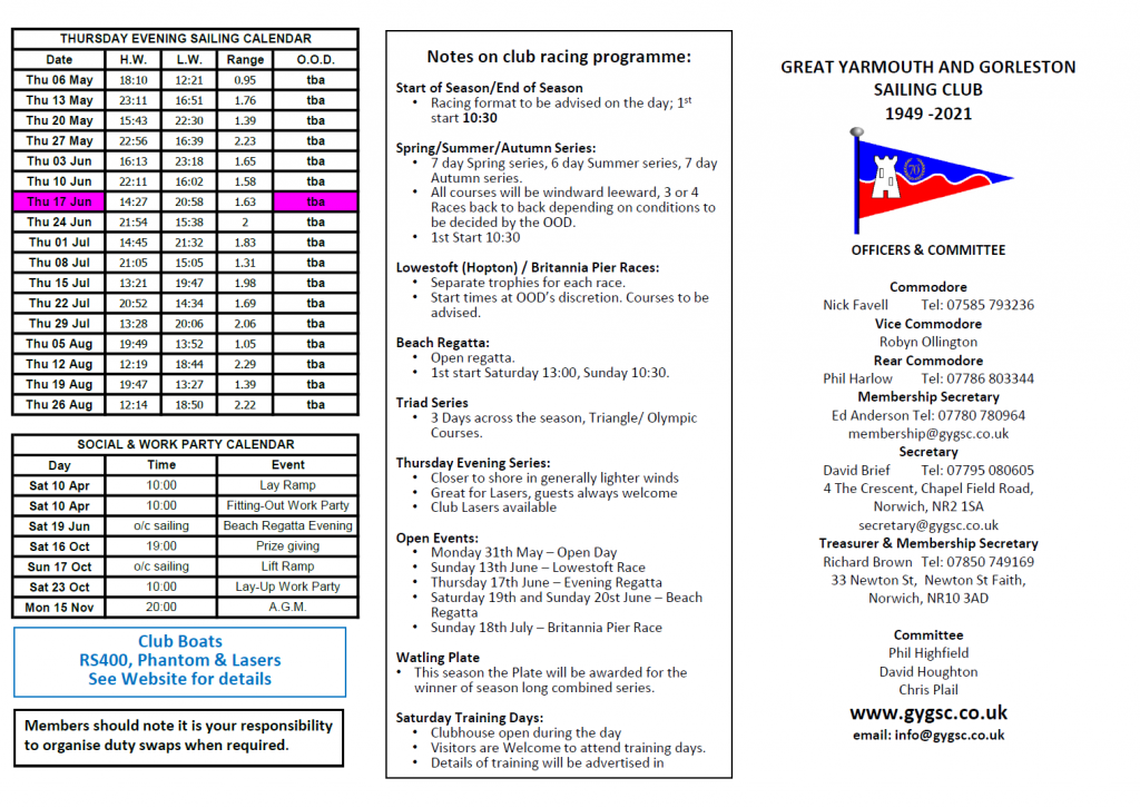 View the GYGSC 2025 Club Card for up-to-date Duty rota – Click Here